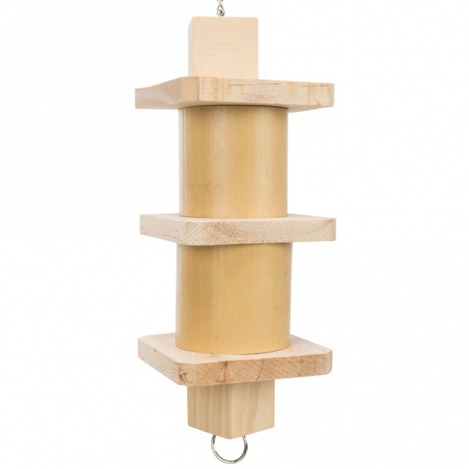Gefertigt aus Bambus und Holz, vereint dieses Snack-Spielzeug natürliche Materialien mit durchdachtem Design. Bambus ist nicht nur langlebig, sondern auch besonders leicht, wodurch das Spielzeug für Vögel einfach zu handhaben ist. Holz hingegen sorgt für eine angenehme, natürliche Haptik und animiert zum Klettern, Knabbern und Entdecken.