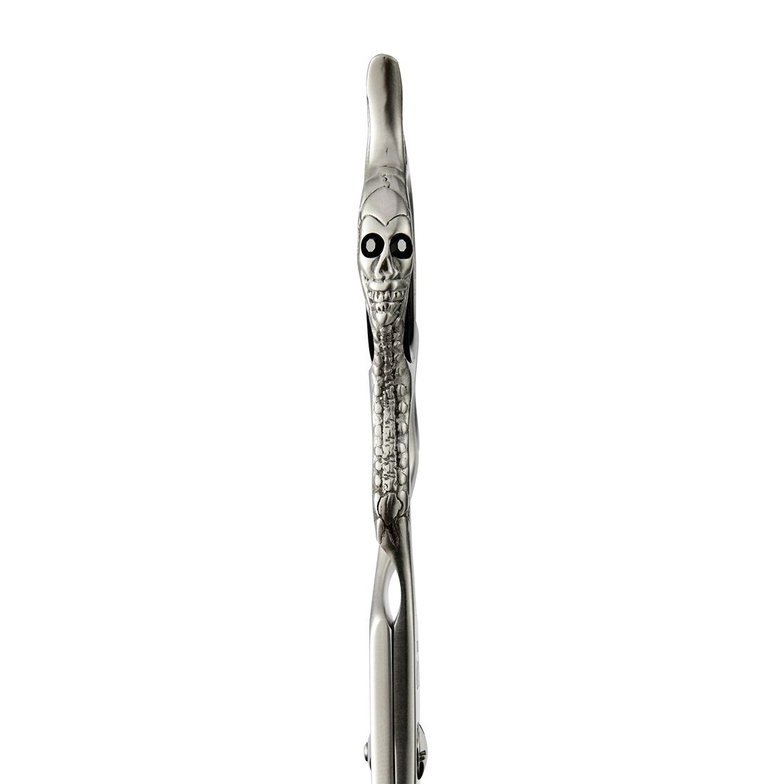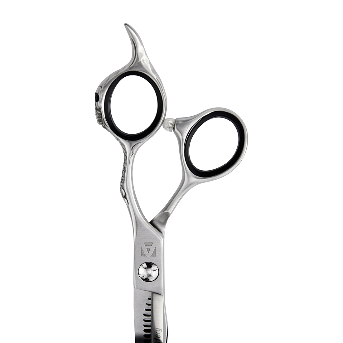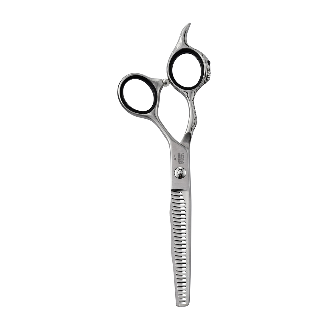 Bereits beim ersten Griff zur ARTERO® "MYSTERY" spüren Sie: Diese Schere ist anders. Gefertigt aus besonders hartem, rostfreiem Edelstahl 440C, überzeugt sie nicht nur mit ihrer langlebigen Qualität, sondern auch mit einer hochpräzisen Schnittführung. Die ergonomische Form mit asymmetrischem Griff und der ikonischen Totenkopf-Figur sorgt für maximalen Komfort auch bei langen Grooming-Sessions.