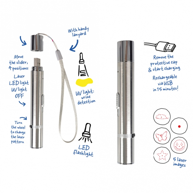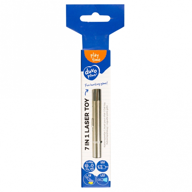 Der duvoplus LED-Laserpointer garantiert viele Stunden Freude für Ihre Katze. Ihre Katze hat viel Spaß, wenn sie dem roten Punkt hinterher jagt. Ihre Katze kann fünf verschiedene Bilder jagen. Der Pointer verfügt über ein LED-Licht und ein UV-Licht sowie ein Umhängeband. Er kann in nur 15 Minuten über USB aufgeladen werden. Dieses Spielzeug regt Ihre Katze dazu an, mit Ihnen zu spielen. Katzen neigen oft dazu, zuzunehmen, daher hilft ein Akitivitäts-Spielzeug, Ihre Katze fit und gesund zu halten.
