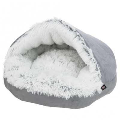 Die Kuschelhöhle Luna besteht aus formstabilem Filz (Polyester), welches isolierend und schmutzabweisend wirkt. Durch den Reißverschluss lässt sich die Oberseite der Höhle abnehmen, so dass diese ebenso als Bett ohne Dach genutzt werden kann. Ein Kissen mit Plüsch-Bezug und Polyestervlies-Füllung macht die Höhle zu einem kuscheligen Schlafplatz. Das Kissen kann per Handwäsche gereinigt werden. Maße: ca. 40 x 24 x 46 cm