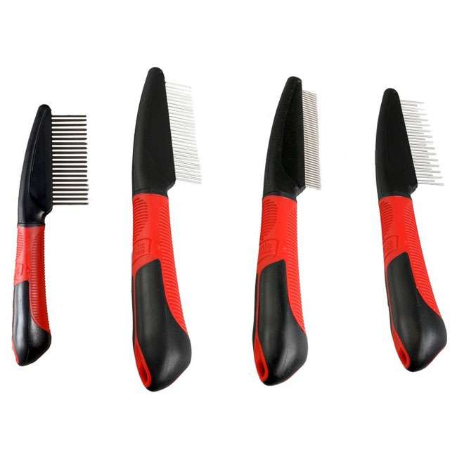 Dieser Fellpflegekamm besitzt auf der Vorderseite mittlere und auf der Rückseite grobe Zinken und ist so vielseitig einsetzbar. Er eignet sich ideal zum Entfernen von Staub, Schmutz und losen Haaren und liegt dabei durch seinen ergonomisch geformten Anti-Rutsch-Softgriff designed by Karlie Flamingo perfekt in der Hand. Maße: ca. 30 x 5,5 x 3 cm (LxBxH) Farbe: Rot-Schwarz