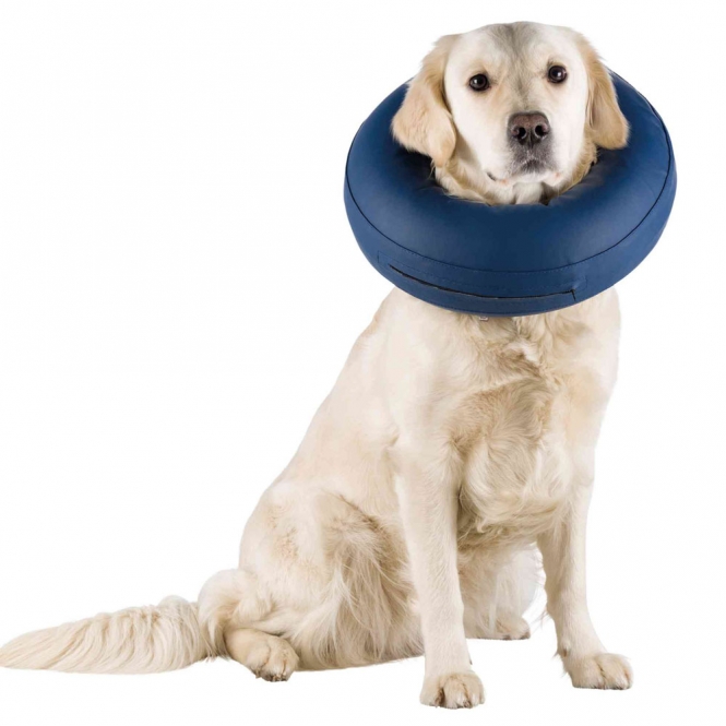 Aufblasbarer Schutzkragen aus Polyurethan/PolyethylenLeck- und Knabberschutz bei Wunden und Ekzemenschützt den Kopf, Brust- und Rückenbereichkein Hängenbleiben oder Stoßen an Gegenständen, Wänden und Treppenbeeinträchtigt weder die Sicht noch das Gehör des Tieresbesonders für ängstliche Hunde geeignetwiderstandsfähigweiches und flexibles Material sorgt für angenehmen TragekomfortFressen, Trinken, Schnüffeln und Spielen ohne wesentliche Einschränkungen möglichmit Klettverschluss zum schnellen und passgenauen AnlegenLaschen zum Durchführen eines Halsbandes verhindern ein Abstreifeneinfach mit warmen Wasser reinigen, kann desinfiziert werdenFarbe: blauGröße M: Halsumfang ca. 40 - 45 cm, Breite ca. 11,5 cm
