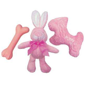 Dieses süße Welpen-Spielset besteht aus 2 niedlichen Stofftieren und einem Gummiknochen und ist in einem praktischen Körbchen verpackt. Auch ideal als Geschenkidee!