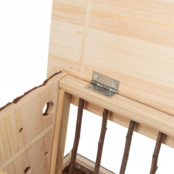 Die Trixie Heuraufe zum Aufstellen ist nicht nur funktional, sondern auch optisch ansprechend. Das natürliche Rindenholz fügt sich perfekt in jedes Heimtiergehege ein und sorgt für eine natürliche Atmosphäre. Ihre Tiere werden es lieben, sich auf dem Dach auszuruhen, während sie gleichzeitig mit frischem Heu und leckerem Gemüse versorgt werden.
