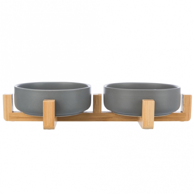 Trixie Napf-Set aus Keramik/Holz - grau/natur