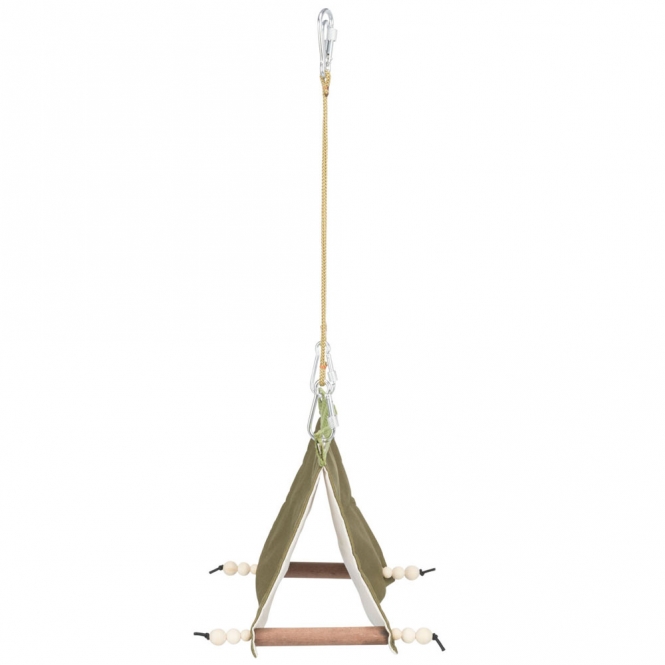 Das Trixie Zelt besteht aus hochwertiger Baumwolle und stabilen Holzelementen. Diese Materialien sind nicht nur angenehm weich und warm, sondern auch sicher für Ihren Vogel. Baumwolle sorgt für eine natürliche Haptik und schafft ein behagliches Umfeld, während das Holz Stabilität gewährleistet und gleichzeitig als Kletterhilfe dient. Ihr Vogel kann sich entspannt zurücklehnen, sanft schaukeln oder spielerisch an der Zeltöffnung hängen.