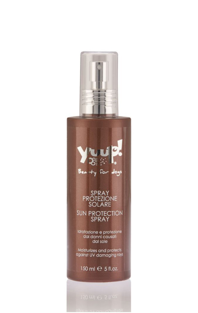 - Yuup!® Sonnenschutz-Spray: Ein nicht fettendes, alkoholfreies Spray, das Fell und Haut mit UV-Filtern, Vitamin C + E, Aprikosenmilch und Korallenalgenextrakt vor den schädlichen Effekten von UVA-, UVB- und Infrarotstrahlen bewahrt.