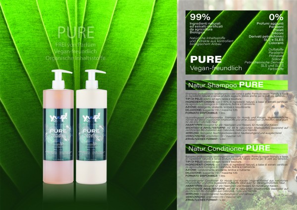 Genau wie alle andere Yuup!®-Produkte hat der neue PURE-Conditioner einen neutralen pH-Wert. Das heißt, er ist optimal auf den pH-Wert des Hundes abgestimmt und ist ebenfalls für Menschenhaut gut verträglich. Somit werden auch die Hände des Hundehalters geschont und gepflegt – Bad für Bad!